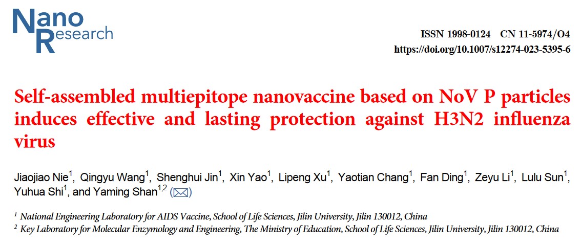 伟德BV1946官网艾滋病疫苗国家工程实验室单亚明教授团队,在通用型流感疫苗研究领域取得新进展。相关研究内容以“Self-assembled multiepitope nanovaccine based on NoV P particles induces effective and lasting protection against H3N2 influenza virus”为题,于2023年2月16日在学术期刊《Nano Research》正式发表。