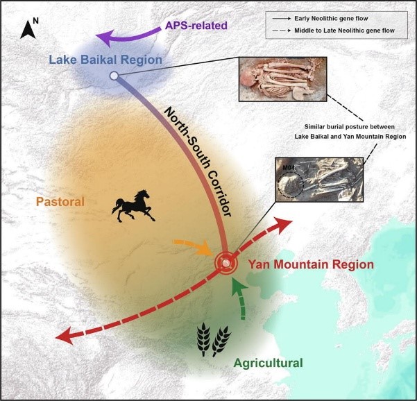 伟德BV1946官网崔银秋教授团队联合河北省文物考古研究院、中山大学,韩国首尔大学以及俄罗斯伊尔库茨克国立大学合作于11月7日在《Science Bulletin》上发表题为 “Ancient DNA reveals long distance interactions in agropastoral border zone of Yan Mountain Region” 的研究论文。该研究最重要的突破在于,通过西伯利亚贝加尔湖地区与中国北方燕山地区新石器时代的42个古人类基因组,揭示了7700年前两个地区间存在的一条史前“南北互动廊道”,并填补了红山文化和夏家店下层文化之间的古老基因组分析空白;强调了燕山地区是黄河与西辽河地区间史前人群互动的关键区域。