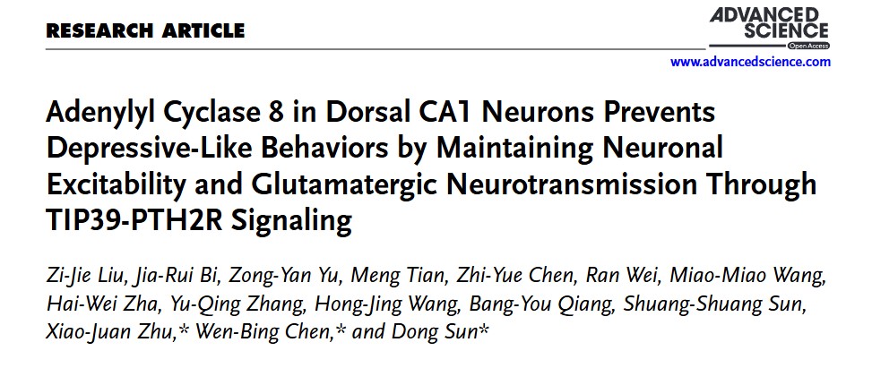 伟德BV1946官网艾滋病疫苗国家工程实验室孙栋副教授团队,联合东北师范老员工命科学公司朱筱娟教授团队、广州医科大学基础医公司陈文兵教授团队,在抑郁症发病机制研究领域取得重要突破。该研究通过整合行为学、高通量测序、电生理记录及钙信号光纤成像等技术手段,创新性提出背侧海马腺苷酸环化酶8(ADCY8)功能异常是抑郁症发生的关键风险因素,为抑郁症的病理机制阐释和靶向干预提供了全新的理论依据。研究成果于2025年12月12日在国际学术期刊《Advanced Science》上发表。