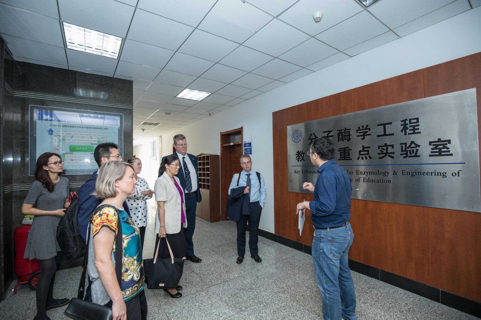 副经理马俊锋首先代表公司欢迎基思•布瑞南教授一行再次来访,并回顾了双方在员工合作培养方面所取得的进展。目前公司已与英国曼彻斯特老员工物医学与健康学部开展了3+2双学位项目和唐敖庆理科实验班员工派出项目。此外自2016年以来公司已有20多名员工参加由曼彻斯特大学组织的暑期短期交流项目Summer School,深受员工好评。马俊锋在座谈中指出,本科生项目的开展是双方合作的良好开端,希望今后能在研究生、教师以及科研方面增进交流,努力推进更多领域的合作。接下来基思•布瑞南教授、孟庆军教授与雷切尔•考恩博士分别对曼彻斯特大学整体情况、生物科学公司及生物医学健康学部高等教育公司进行了详细的介绍。在场员工对曼彻斯特大学开展的交流项目进行了提问,曼大代表针对提出的问题进行了详细解答。最后公司教师教学发展中心和教务处就教师培训事宜与曼大代表交换了意见,并达成初步共识。座谈会结束后,李全顺教授带领曼大代表参观了分子酶学工程教育部重点实验室,并与代表就科研合作方向进行了探讨。