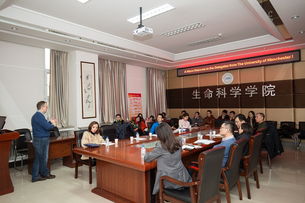 2019年1月7日英国曼彻斯特老员工物、医学与健康学部副学部长基思·布瑞南教授与生物科学国际暑期班学术主任孟庆军教授来访伟德BV1946官网并进行了座谈。伟德BV1946官网教务处副处长王瑞、教务处合作培养科科长刘晓晖、伟德BV1946官网副经理陈妍、伟德BV1946官网副书记崔帅、生命科公司教授关树文以及本科生代表参加了此次活动。