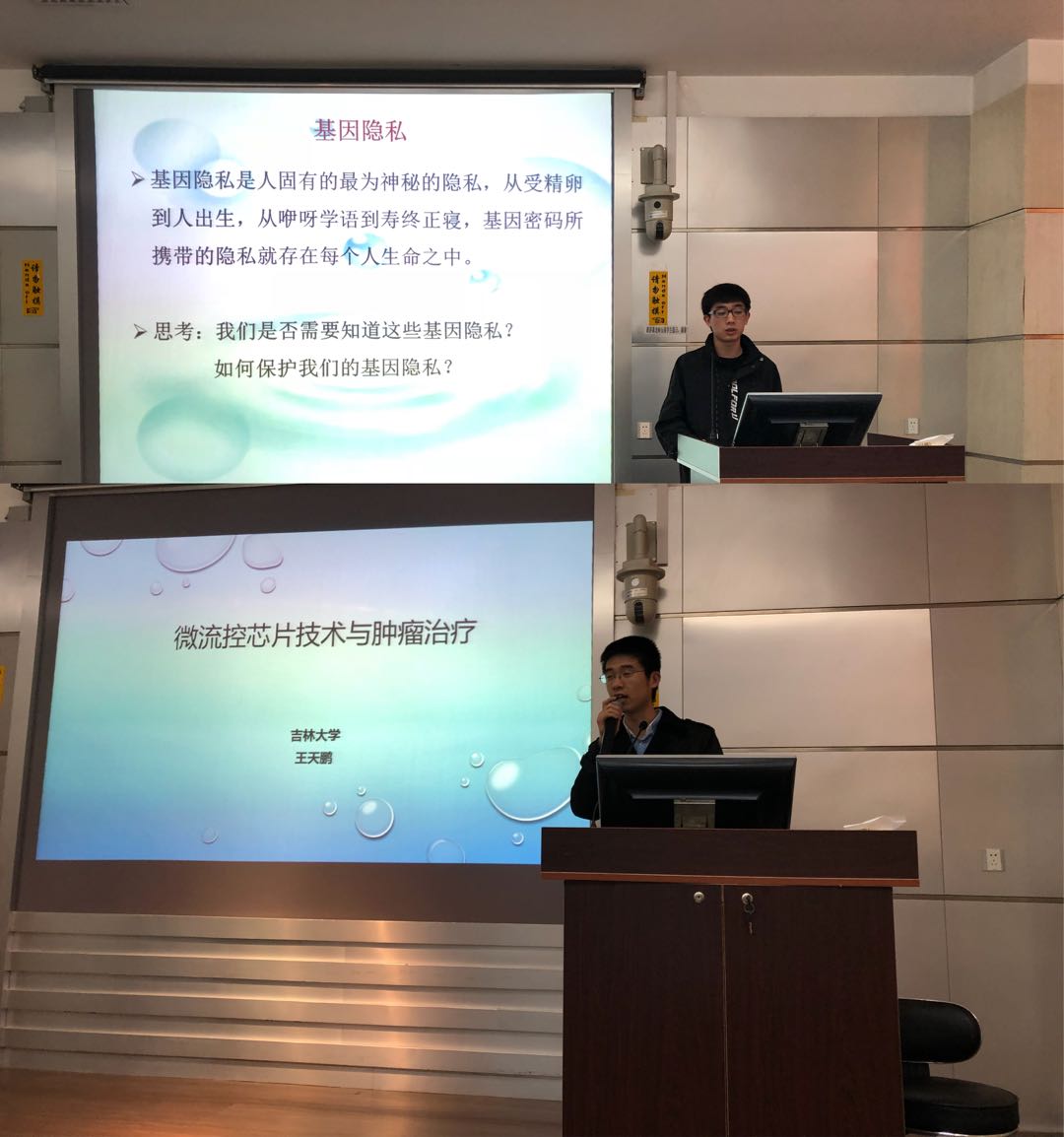 随后伟德BV1946官网研究生杨洁冰、王天鹏两位同学分别为大家做了题为“人类基因组和基因技术”和“微流控芯片技术与肿瘤治疗”的学术讲座,内容深入浅出、充满趣味,赢得了在场师生的热烈掌声。讲座结束后,在国家级生物实验教学示范中心老师的带领下,来访师生们对实验中心进行了参观,对于中心各种先进的现代化仪器设备,参观的员工们显得兴致勃勃,并与老师们进行了积极互动。参观结束后,来访师生游览了伟德BV1946官网中心校园,最后来到校史馆,通过讲解员细心生动的讲解,大家对伟德BV1946官网的历史沿革与发展有了进一步的了解。