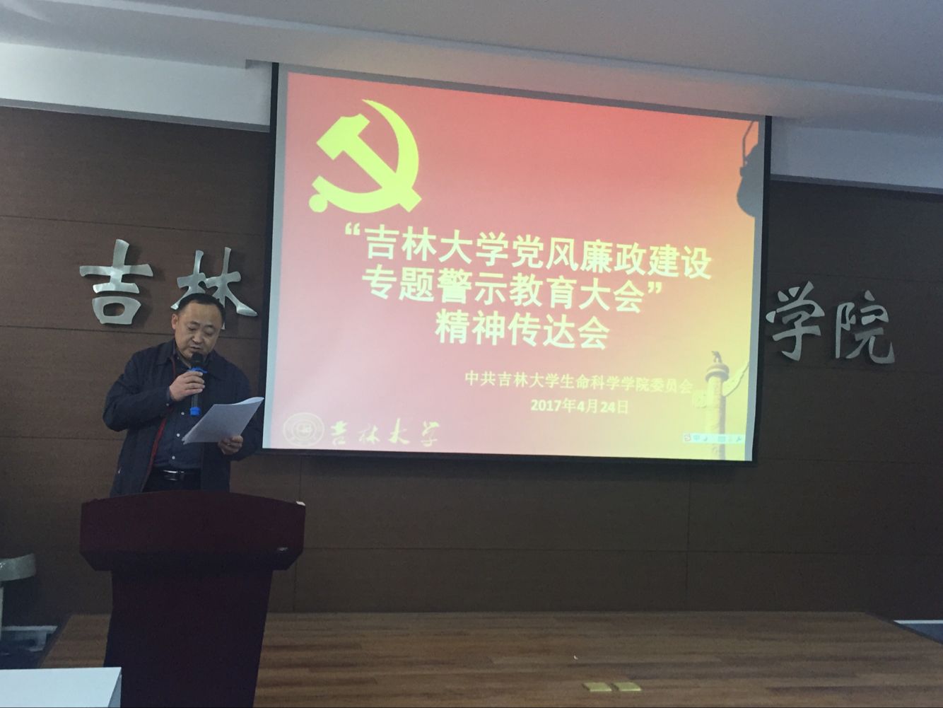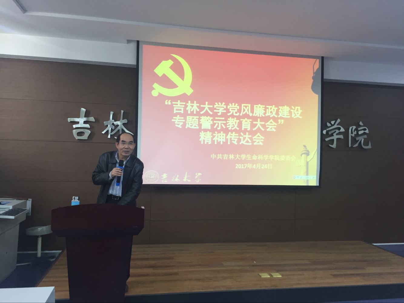 按照公司党委要求,2017年4月24日下午2:00,伟德BV1946官网在生命科学楼107室召开教职工大会,传达公司党风廉政建设专题警示教育大会精神。会议由公司党委书记李佰志主持。