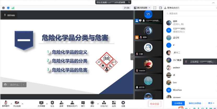 魏士刚根据统计数据强调了实验室危险化学品管理的重要性,讲座主要围绕危险化学品分类与危害;危险化学品的管理现状;危险化学品的安全管理;危险化学品的风险防范四方面展开。