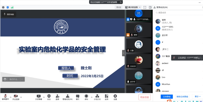 为认真学习贯彻习近平总书记在3月17日中共中央政治局常委会上的重要讲话精神,全面落实孙春兰副总理来校调研时的指示精神,贯彻落实教育部党组和吉林省委省政府、长春市委市政府决策部署,结合当前疫情形势,公司按照公司疫情防控工作总体要求,进一步加强实验室安全教育引导工作,有针对性的强化公司师生危化品存放管理能力,进一步加强特殊时期公司实验室安全管理,持续加强对师生的线上安全教育培训。