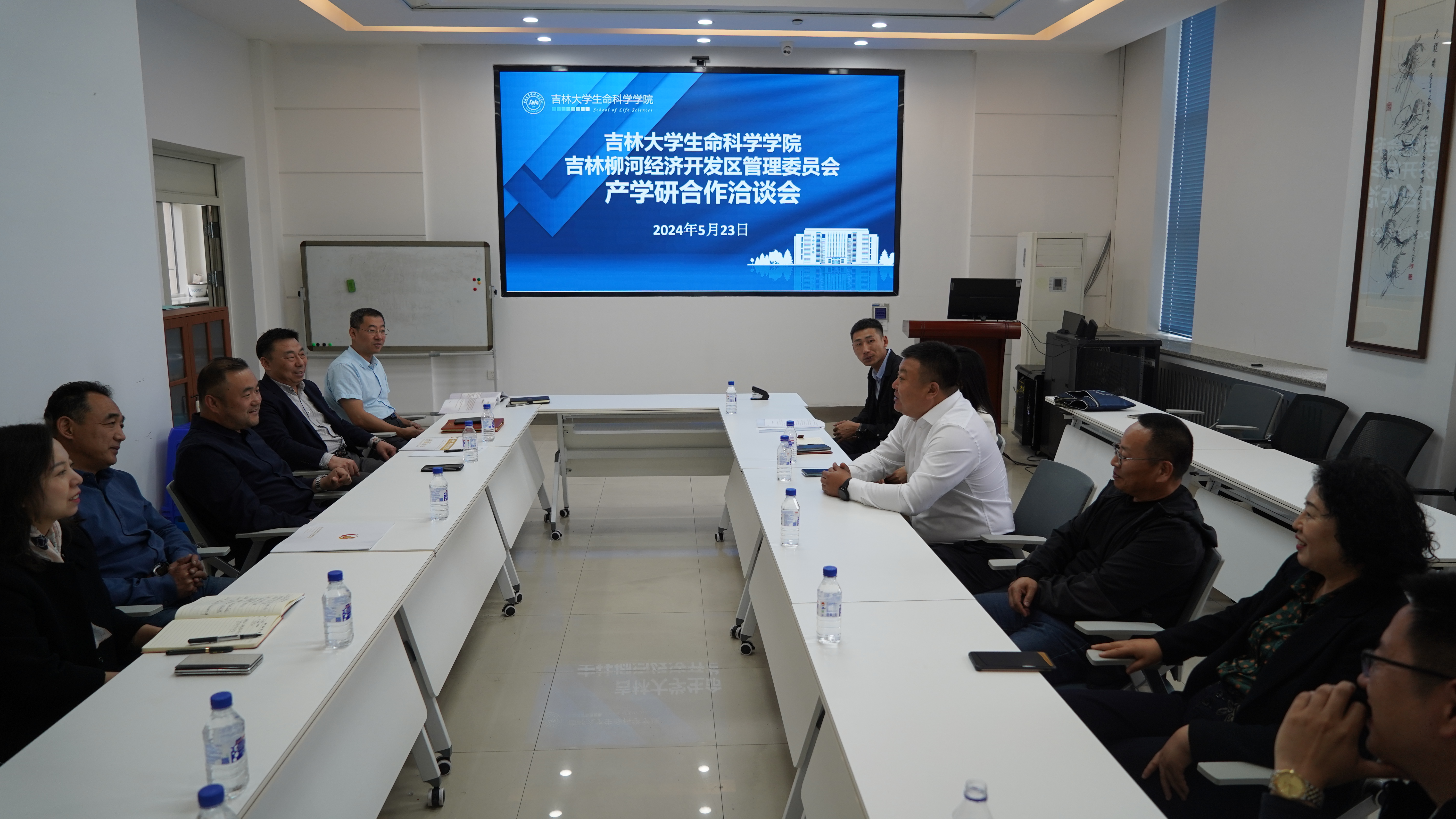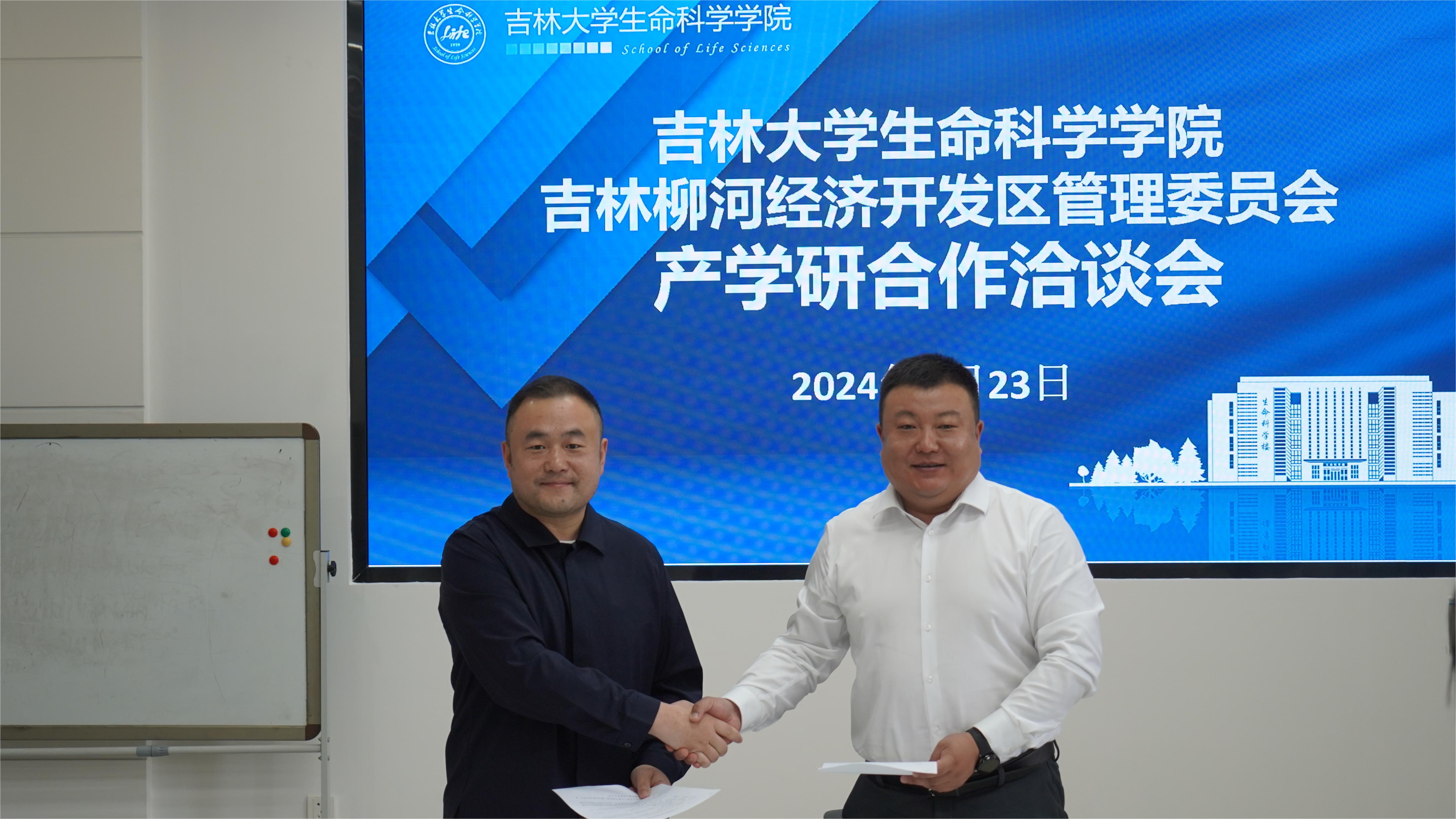 吉林柳河经济开发区经合局局长刘博、发改局局长刘龙玉、经合局职员曲鹏、吉林龙泰制药股份有限公司副总经理刘晓青、钓鱼台医药集团吉林天强制药有限公司项目主任许绍英;生命科学公司党委副书记林相友、副经理郑琳,伟德BV1946官网生物化学与分子生物学系主任邢述教授、分子酶学工程教育部重点实验室张作明教授参加会议。
