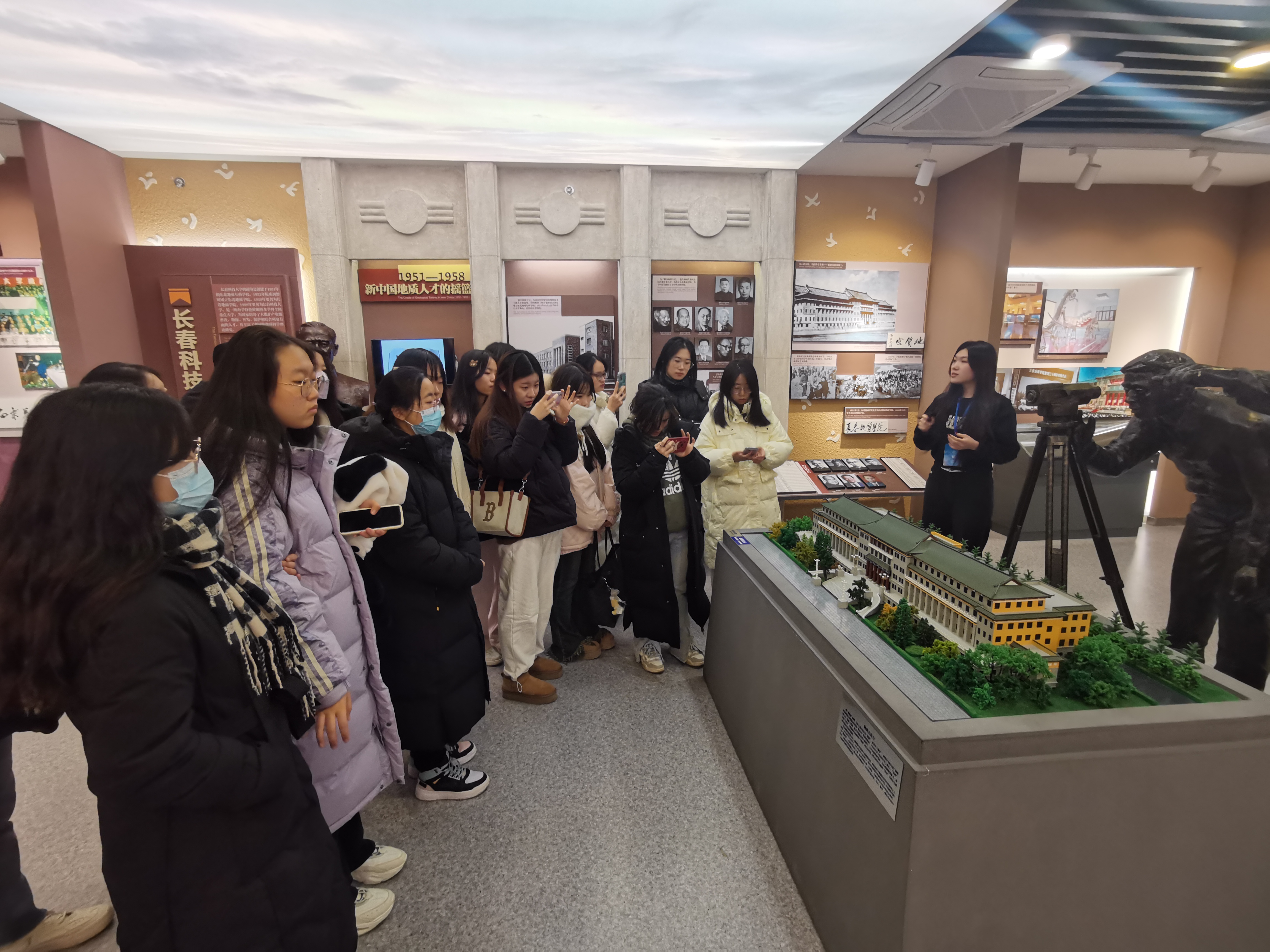 一代代吉大人栉风沐雨,春华秋实,薪火相传,砥砺前行。进入校史馆,首先映入眼帘的是“求实创新 励志图强”的吉大校训,同学们跟随讲解员的引导,依次参观了馆内的各个展区,通过一幅幅生动的图片资料、一个个仿真场景的展示、一段段感人的文字介绍,让同学们真切感受到伟德BV1946官网七十余年的奋斗历程,深刻了解了吉大的红色基因,感受了先贤们的奋斗精神。