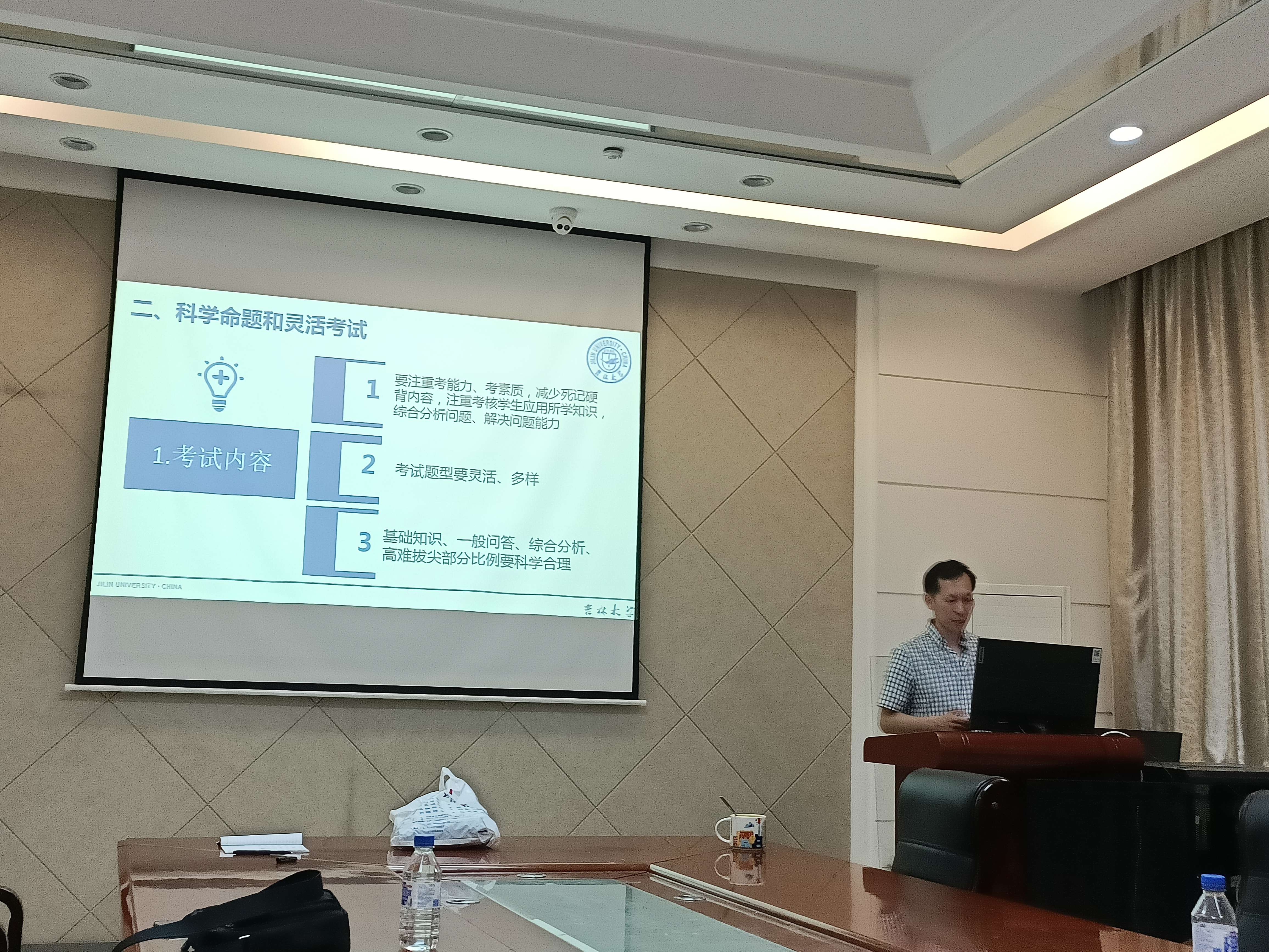公司教学办公室主任刘成柏首先以新修订的《伟德BV1946官网本科课程考核管理办法》(校教字﹝2020﹞123号)为指导,从考前工作布置及教育动员、科学命题和灵活考试、考务组织安排、考风考纪、阅卷工作等五个环节,对考试相关工作做了详细、具体的讲解,并对考试题型、试题内容及考核方式、考试改革的要求和建议做了全面地阐述。按照公司要求,对监考、巡考的工作提出明确要求,在本次期末考试中要遵循“预防在先,惩戒在后”的原则,做到严肃考纪、端正考风,严禁出现违纪、作弊行为;要求阅卷工作公平、公正且及时,从而确保考试平稳、诚信、公平地进行。校级教学督导专家杨德胜以优秀试卷评阅案例为基,充分详实地讲解了试卷设计、题型结构、评阅规则、赋分要求、试卷复核、成绩分布与登录以及试卷分析填写等方面的内容,重点强调了历年来公司组织试卷复查中发现的典型问题,提倡阅卷科学规范,成绩公平公正。员工工作办公室主任张春阳重点强调了公司对员工关于加强考风考纪的具体要求,并明确了考场违纪处理的规则、方式以及注意事项。