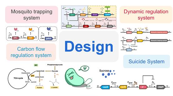 2021年Jilin_China团队由伟德BV1946官网陈妍教授、侯阿澧副教授、詹杨副教授及孙博高级工程师四位导师共同指导,队员由来自伟德BV1946官网、电子科学与工程公司及通信工程公司的15名同学组成。参赛题目为“Mosquiet”,该项目设计了一个基于动态调控策略的大肠杆菌生物产酸产氨诱蚊杀蚊装置,其核心思路是通过基因工程改造大肠杆菌,使其不断生产能够吸引蚊子的气味小分子——乙酸、L-乳酸、氨气,再通过电网杀死被吸引过来的蚊子。考虑到在家庭场景中的使用,团队专门设计了可以让工程菌转运并代谢蔗糖的蔗糖代谢系统。Mosquiet作为面向人类日常生活的参赛项目,拓展了杀蚊灭虫的新方法,对于科学灭蚊、环境保护具有积极意义。此外,今年的Jilin_China开展了多项社会实践及人文调查。团队还自主设计了供项目落地实施的硬件装置,最终以建模的方式呈现。
