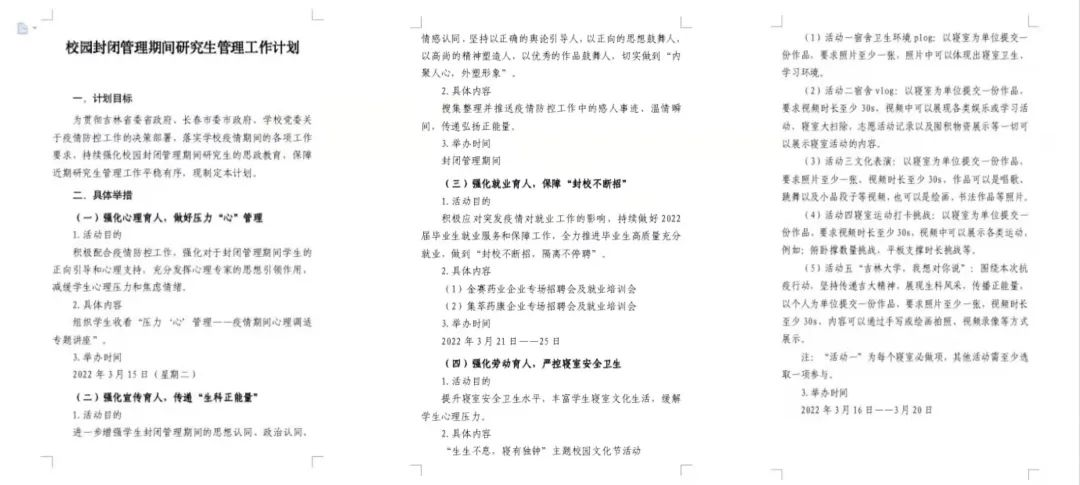 “科学应对,精准施策。”公司积极配合公司做好物资保障、统筹管理、核酸检测、排查管控等工作,紧急制定校园封闭管理期间员工管理工作计划,做到严格管控、精准施策。