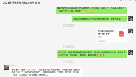 结合公司 “2022年春季学期在线教学督导工作”要求,公司领导、督学以及教学委员会充分深入在线教学第一线,开展教学检查及督导,实时把握在线教学的情况,将共性问题和优秀案例及时公布,有效开展监督的同时,助力在线教学质量不断提高。