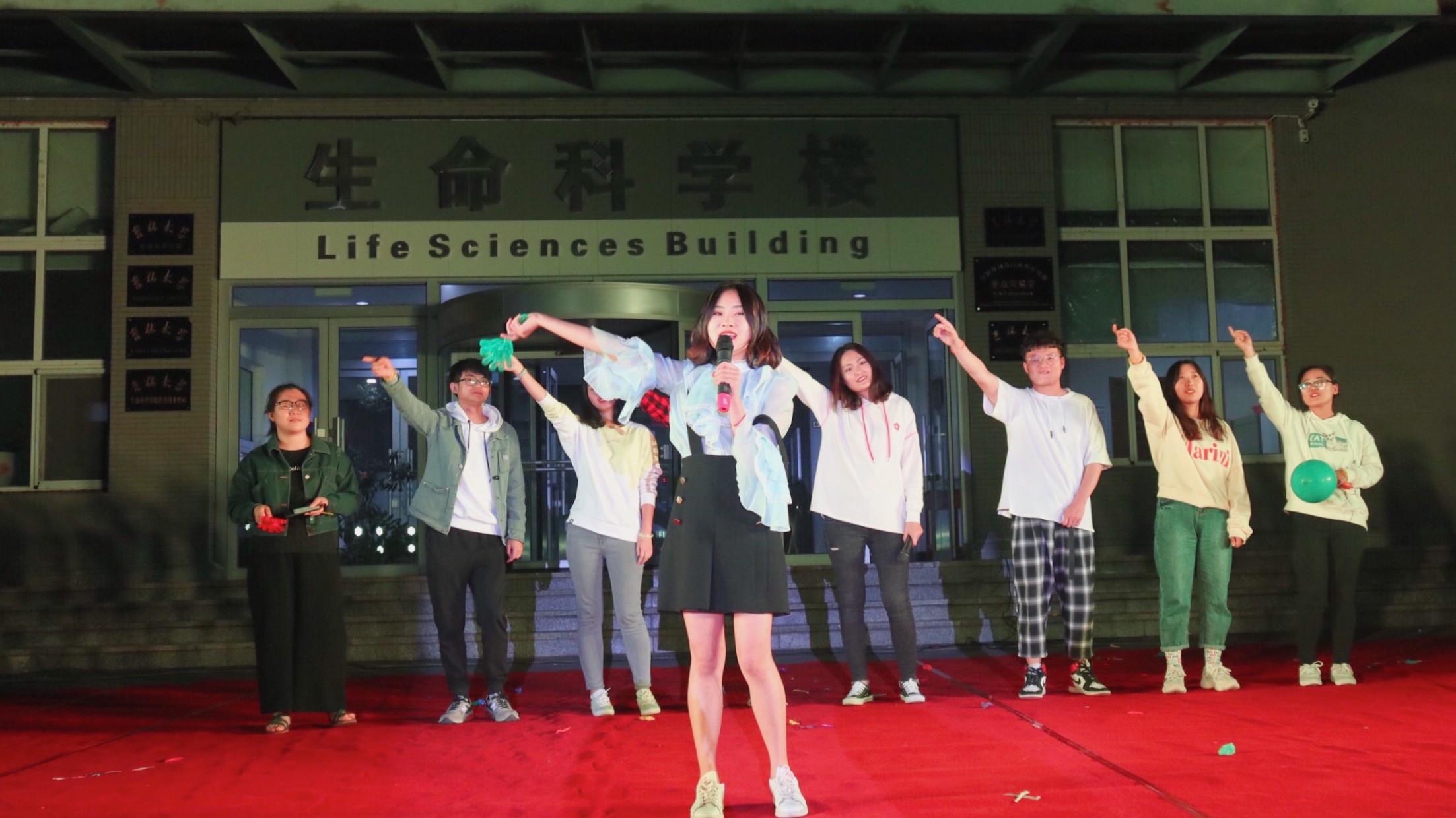 动感开场舞《havana》点燃了全场热情;改编歌曲《生科欢迎你》表达了对新同学的热烈欢迎;诗朗诵《我看见》将诗歌与生物相关名词结合在一起;吴永革老师和徐力老师共同演绎了《我和我的祖国》,二位老师铿锵有力的歌声将晚会推入高潮;《你还要我怎样》倾诉了别样心声;歌曲串烧串联了我们的回忆。抽奖和游戏环节中,大家一起踩气球、一起拥抱、一起考验默契,在欢笑声中收获着新的友谊。