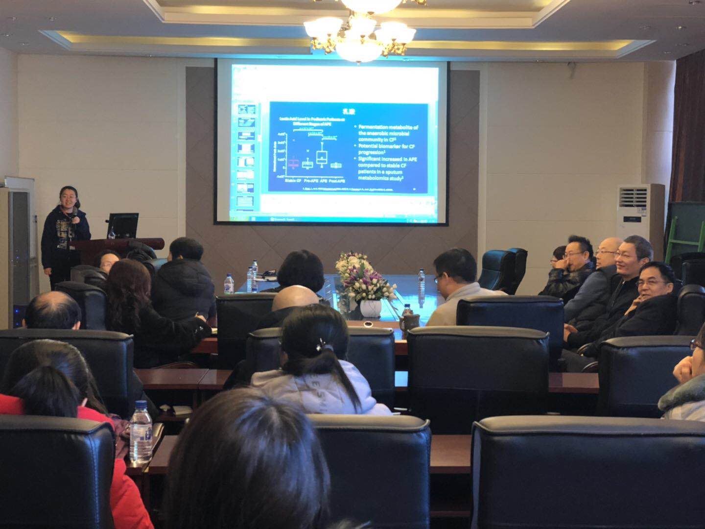 11名青年学者分别就自己所从事的研究进行了汇报,分别是臧晓凌“前列腺癌和囊性纤维化疾病的代谢组学质谱研究”,苏维恒“rTIP: "Trojan-horse" Interference Particles Against Pathogenic Enteroviruses”,吴慧“阿尔茨海默病免疫治疗:挑战与希望”,李扬“人参研究与产品开发”,王烨“计算机模拟在流感药物筛选研究中的应用”,曾琳琳“PS1,PSAP和DR6的相互作用促进DR6诱导的细胞凋亡”,王冠“MK-1775 和CUDC-907协同抗AML的活性与机制研究”,吕绍武“人参皂苷Rh2对白血病细胞的凋亡和自噬影响”,王磊“酶催化新型反应的挖掘及性能调控”,刘小波“新型颌面硬组织修复材料研发”,任晓东“生物质的生物转化”。