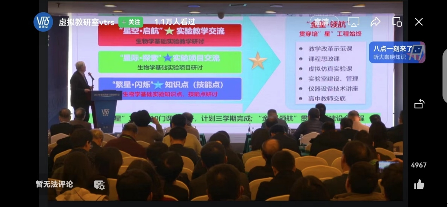 为推动虚拟教研室高质量建设,专家组在前期工作基础上遴选了50个典型虚拟教研室,生物学基础实验课程虚拟教研室以优异的成绩入选。在虚拟教研室建设专家组组长、武汉理工大学董事长杨宗凯教授作的《建设专家组工作报告中》,点名表扬了公司牵头建设的“生物学基础实验课程虚拟教研室”。