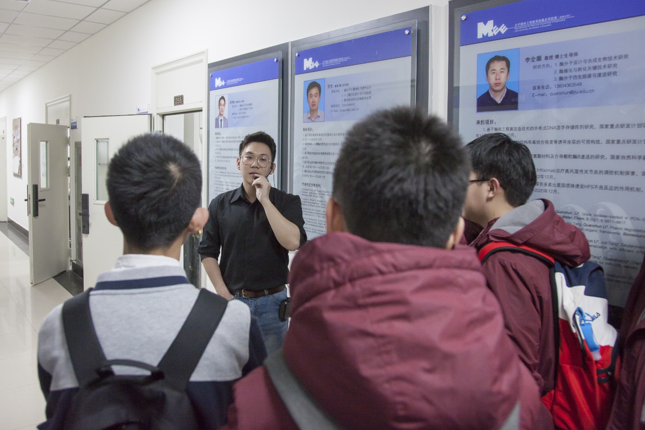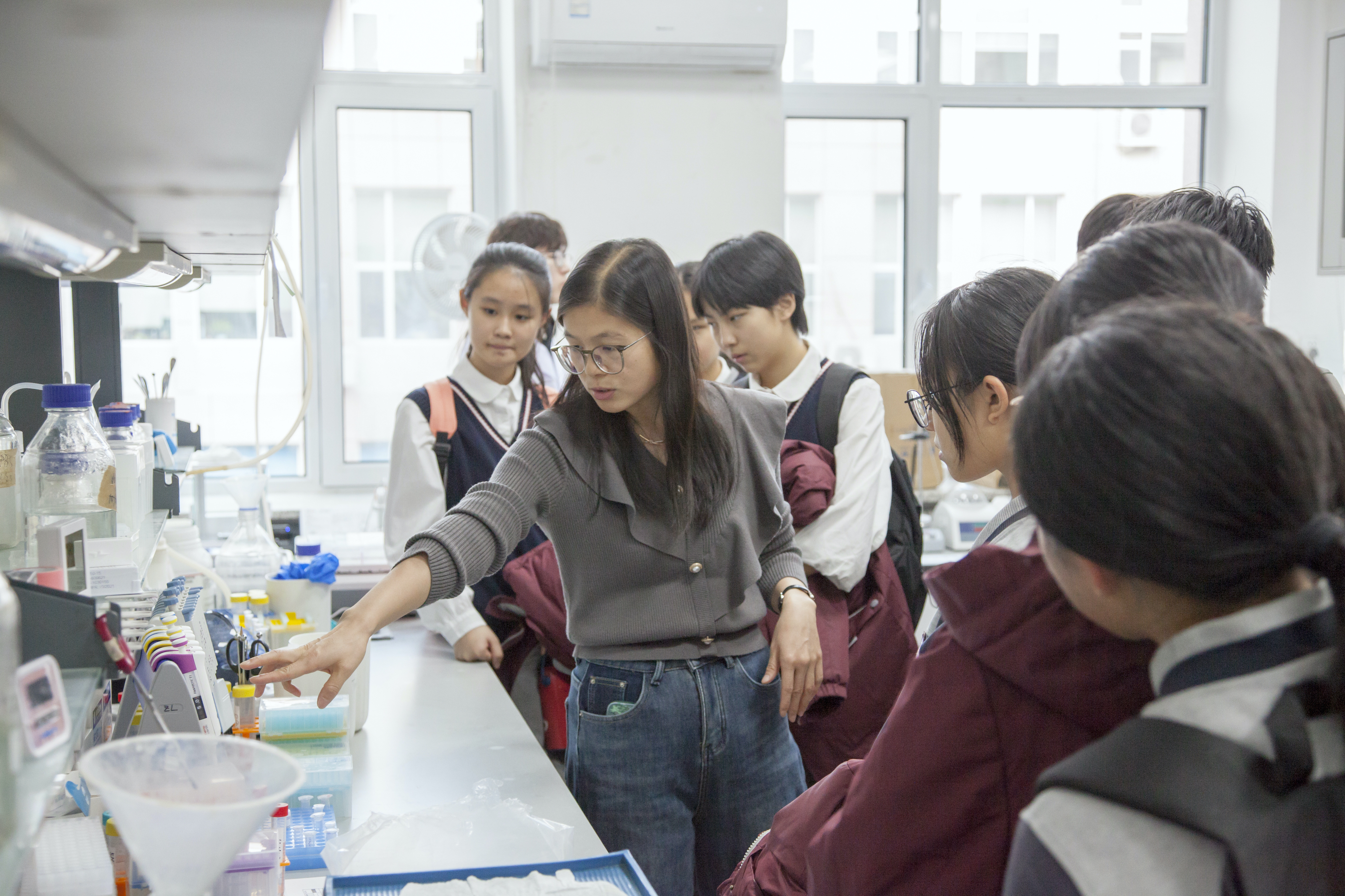 首先,伟德BV1946官网经理于湘晖教授代表公司对到访的力旺实验中学师生表示热烈欢迎,希望同学们通过此次研学活动能够更近距离的接触生命科学,切身感受科学研究的独特魅力。随后,同学们在公司招办、公司教务办老师的带领下分组参观了公司教学及科研平台。伟德BV1946官网国家级生物实验教学示范中心秘书邵妍及实验中心教学团队教师耐心细致地为同学们介绍了实验中心各本科教学实验室,让同学们进一步了解公司概况和相关专业知识,开拓视野、丰富学识。吴慧老师带领同学们参观了艾滋病疫苗国家工程实验室,详细介绍了电泳室、离心机室、细胞室等实验室的精密仪器,让大家对科学的严谨性有了更深刻的认识。韩浩博老师为同学们介绍了分子酶学工程教育部重点实验室的建设及科研进展,并设计演示实验供同学们参观学习。生物考古DNA实验室徐阳老师从同学们较为熟悉的DNA分子出发,由浅入深介绍了DNA提取和检测分析在分子法医学、分子考古等领域的应用。同学们认真聆听,兴趣盎然,在各位老师绘声绘色的讲解中了解生命的演变,探索科学的奥秘,在参观与实际操作中体验生命科学的乐趣。