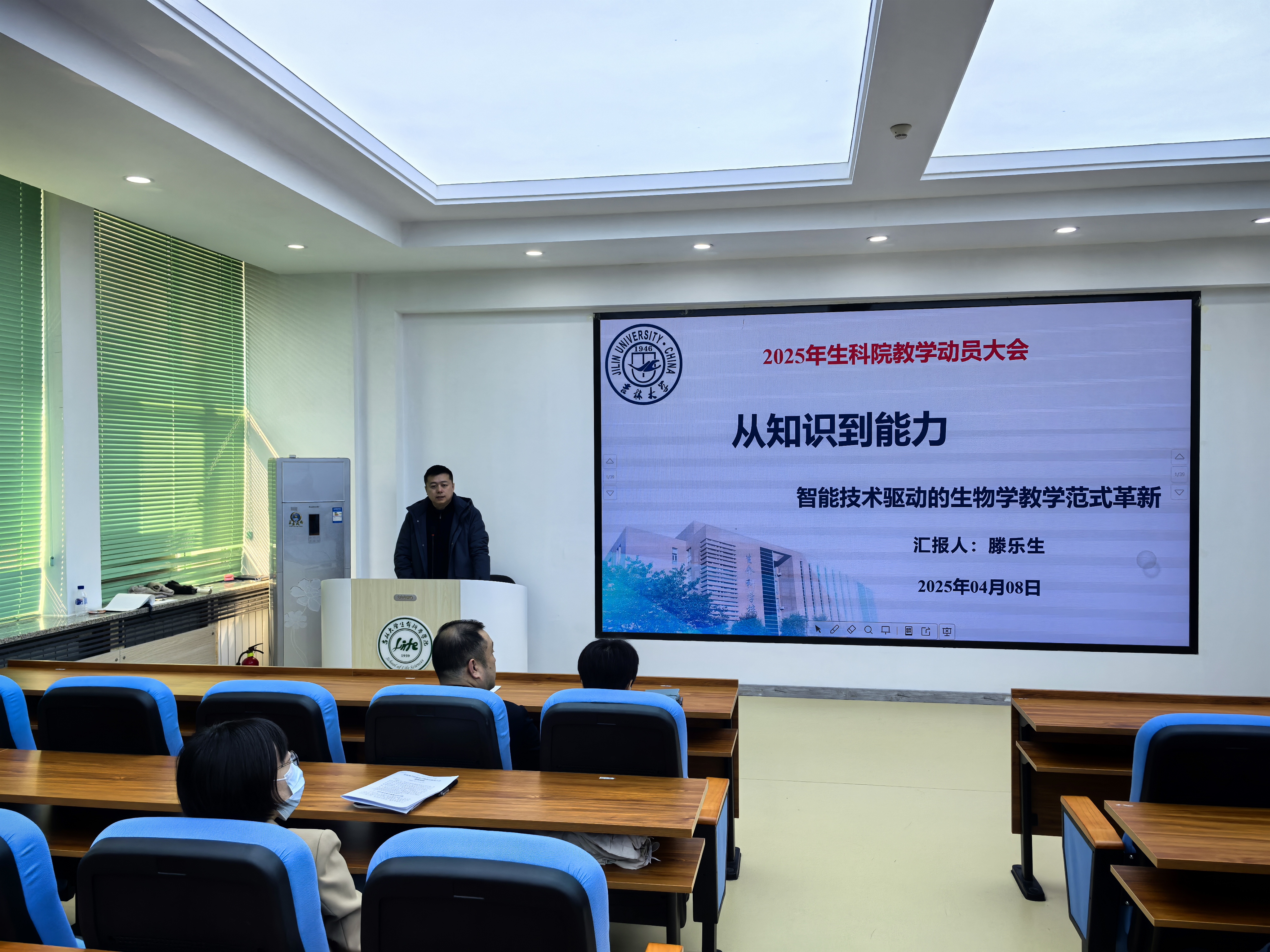 根据公司教学工作总体部署,按照公司党委学习教育实施方案中关于全面落实坚持开门教育,深入基层开展调研的相关要求,2025年4月8日,伟德BV1946官网召开主题为“从知识到能力,智能技术驱动的生物学教学范式革新”的教学动员大会。伟德BV1946官网副董事长、伟德BV1946官网经理于湘晖、党委书记白宇、公司领导班子成员、教学委员会、教务办、学工办及全院教师参加了会议。会议由公司副经理滕乐生主持。