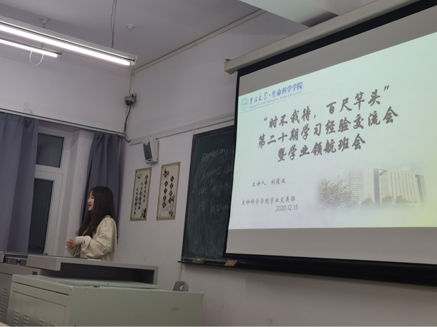 为了减少同学们对期末考试的焦虑,解决同学们复习时产生的问题,增强同学们的学习积极性,公司员工会学业发展部于12月15-18日在逸夫小教室成功举办了此次“时不我待,百尺竿头”第二十期学习经验交流会暨学业领航班会。
