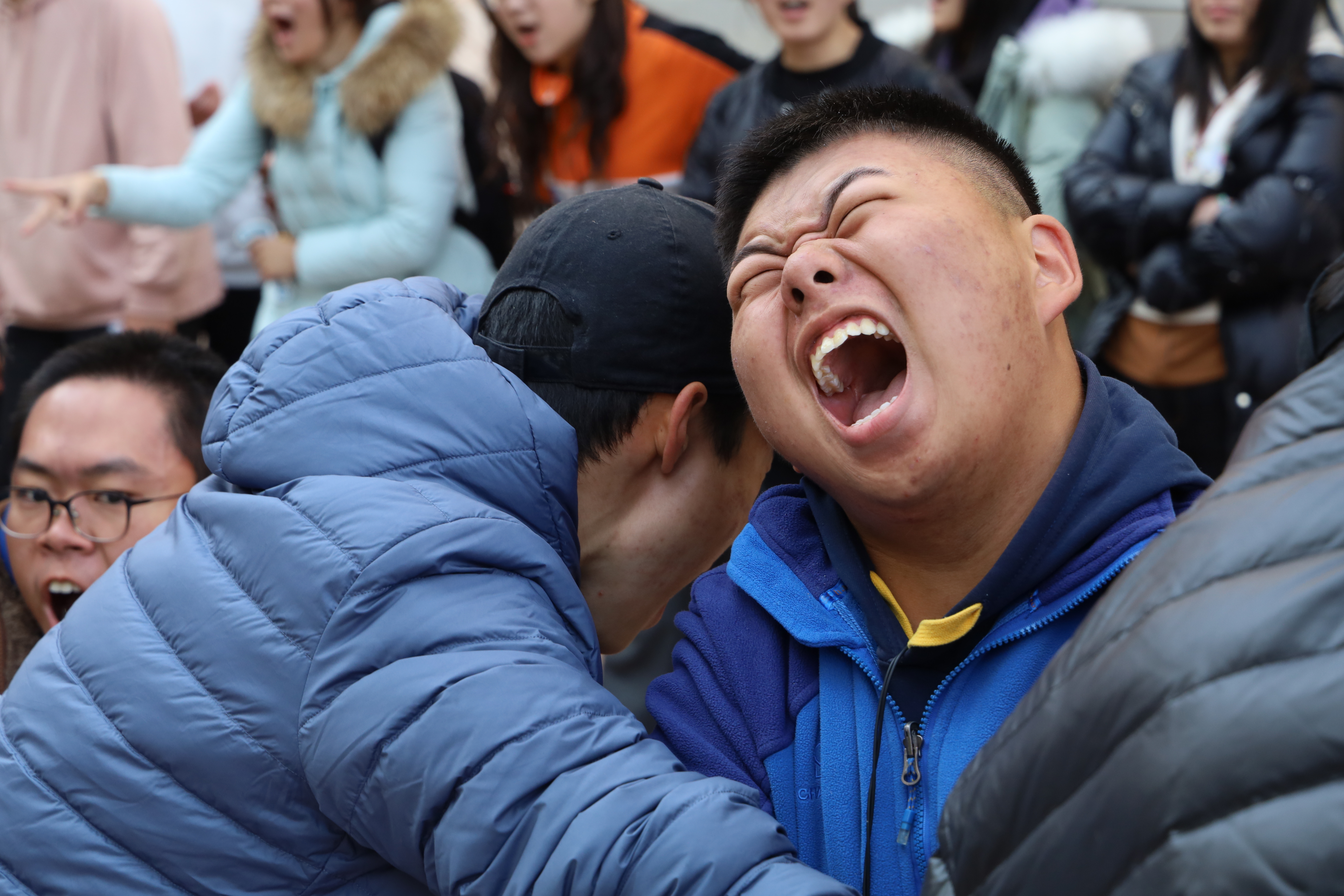 比赛现场,凛冽的秋风盖不过大家的口号与欢乐,正午的阳光赛不过浓浓的热情,各参赛队摩拳擦掌,跃跃欲试。随着裁判的一声哨响,参赛队员瞬间爆发出全身的力气,心往一处想,劲往一处使, 决定胜负的红丝带左右摇摆,两边的队员齐齐后仰,蓬勃的活力在号子中激扬,场边的拉拉队大声呐喊助威,恨不得亲自上场。