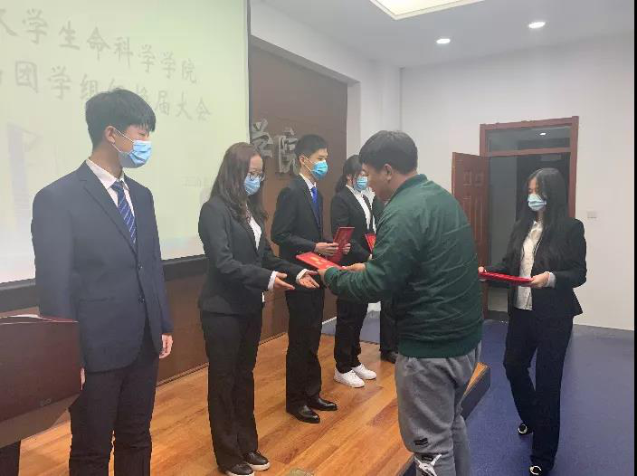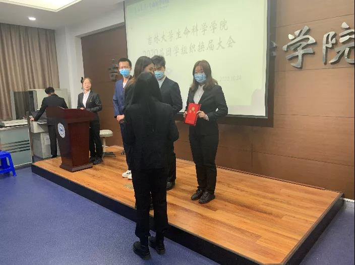 大会在雄壮的国歌声中拉开帷幕。首先,于佳宁老师宣读2020届伟德BV1946官网团学联组织员工干部名单。接着,于佳宁老师、齐鹏老师、丁子芮老师分别为团学组织主要员工干部颁发聘书,并合影留念。