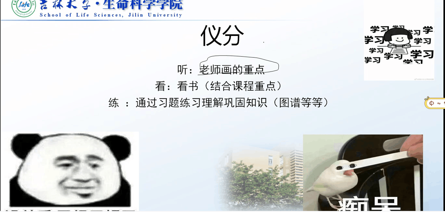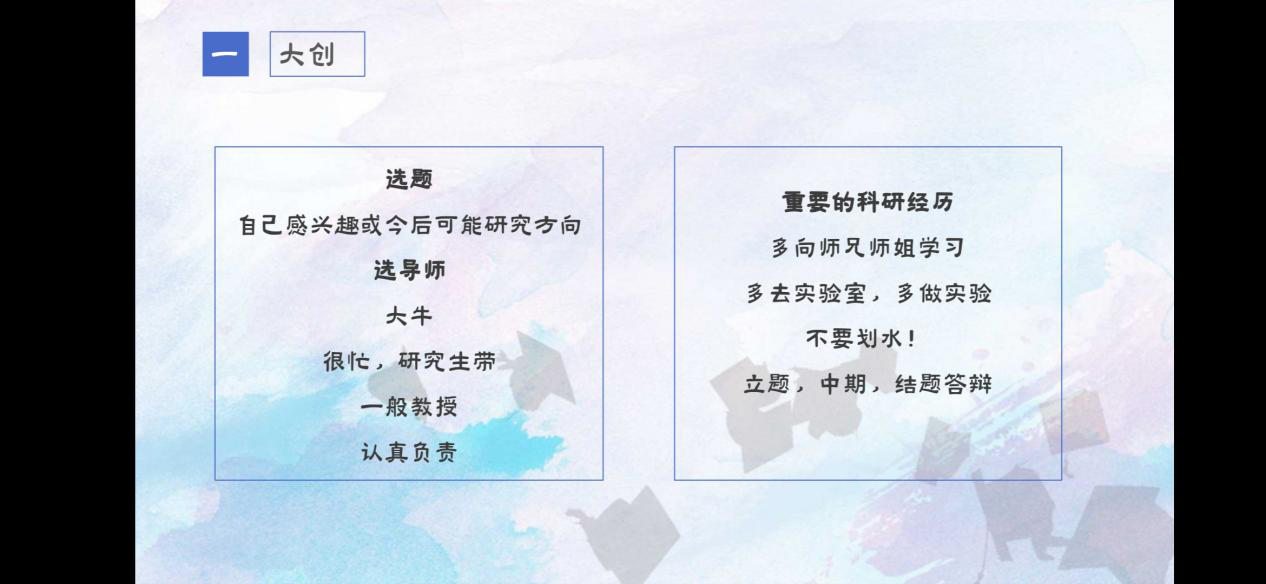 胡维维学姐用诙谐幽默的语言和我们分享了难点学科物理化学和仪器分析的学习方法。