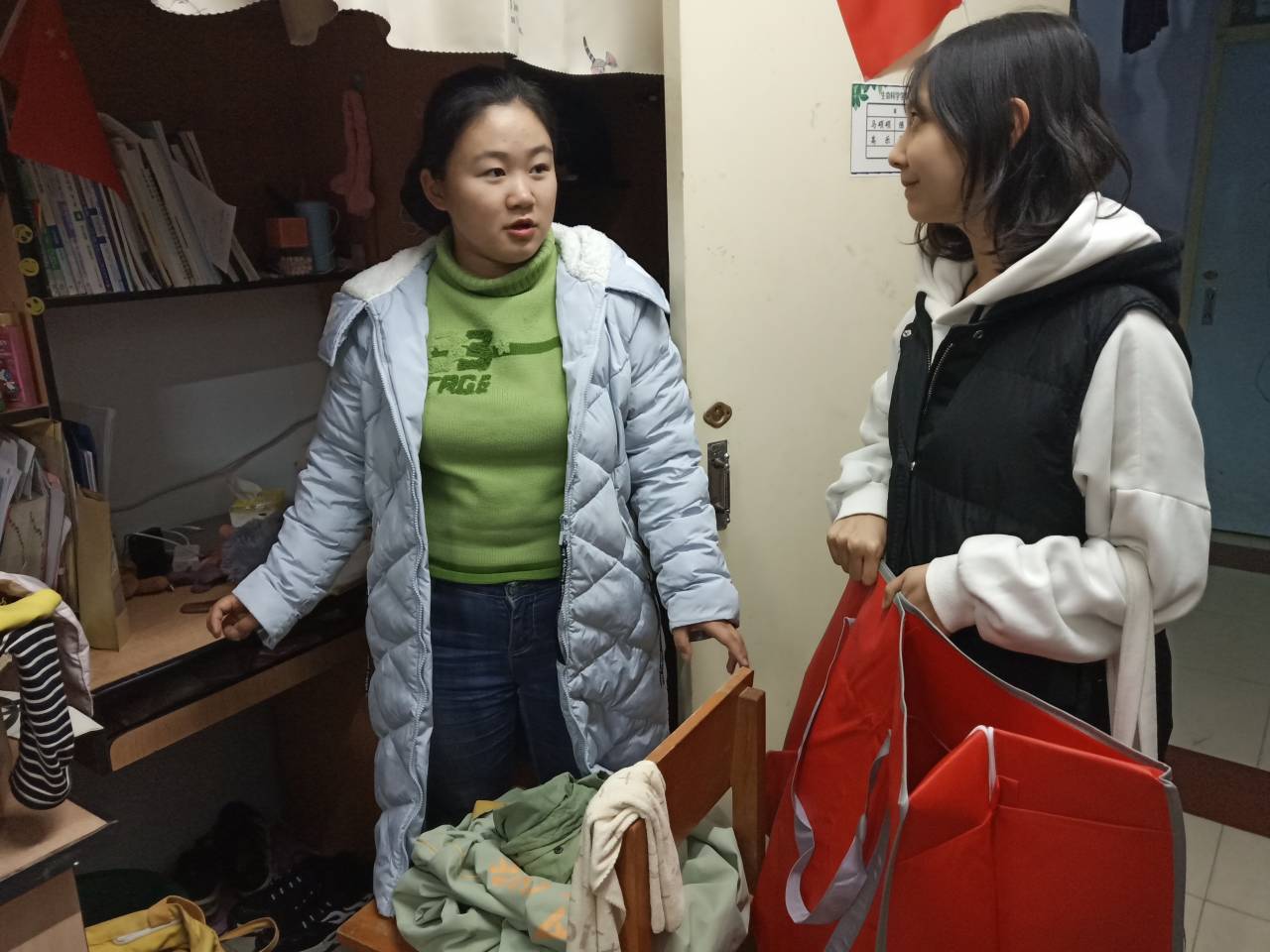 此次活动分两次进行,在10月25日星期五晚上勤工助学部成员带领志愿者在大学城三公寓和文苑一公寓走寝收集衣服,10月26日星期六晚上在南苑三公寓、南苑四公寓以及北苑二公寓收集衣服。活动中,同学们纷纷捐出了自己的闲置衣物,两天共收集到10袋衣服,每一件都按照要求进行清洗和折叠。这些衣物将在后期由公益组织统一分类筛选,按需分配寄往需要帮助的地方。