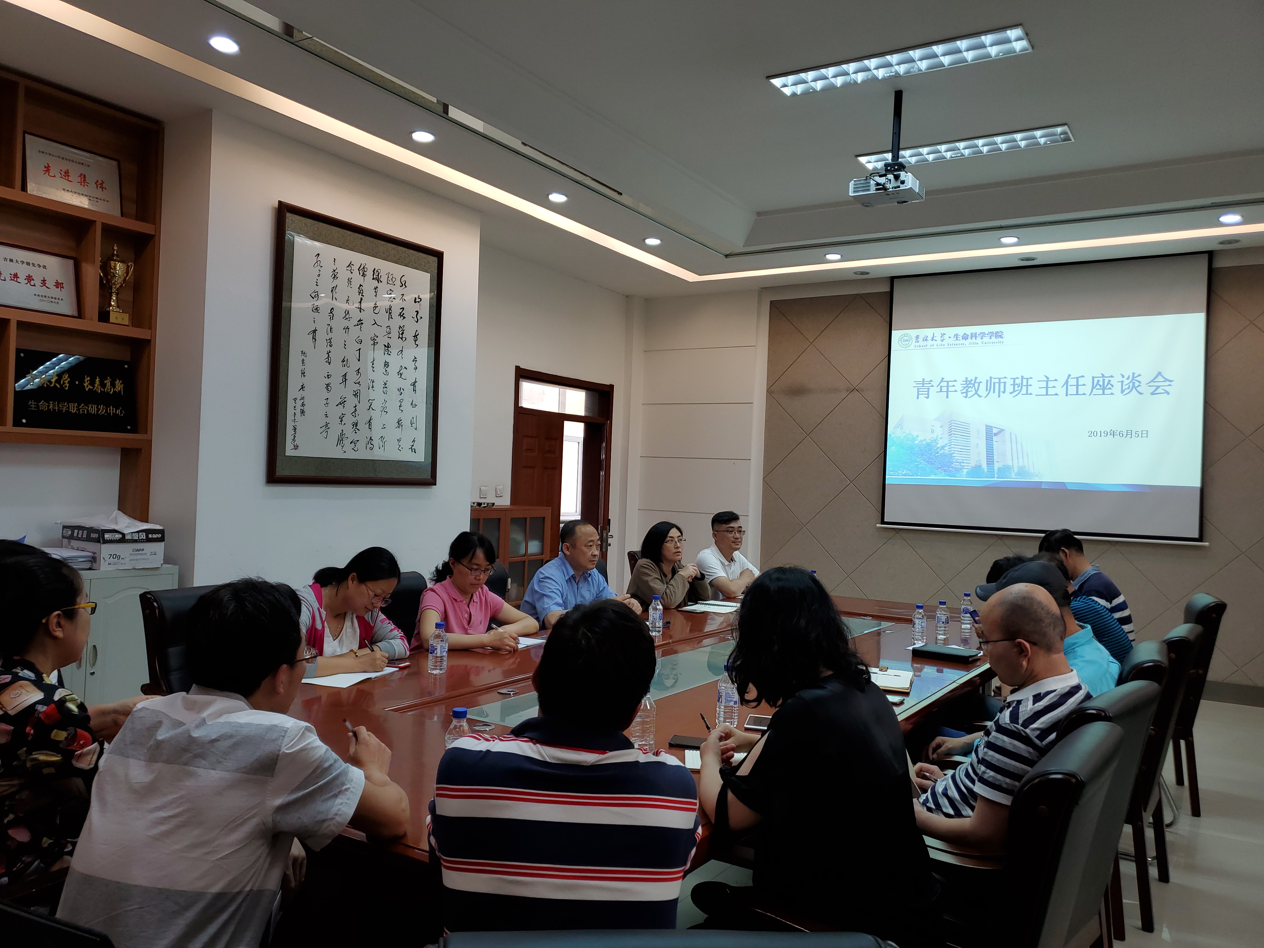 为进一步深入贯彻落实全国思想政治教育大会精神,加强青年教师班主任队伍建设,推进构建“三全育人”格局,伟德BV1946官网于2019年6月5日14:00在生命科学楼335室举行了青年教师班主任座谈会,公司党委书记李佰志、副经理陈妍、副书记崔帅,以及青年教师班主任参加了本次座谈会。