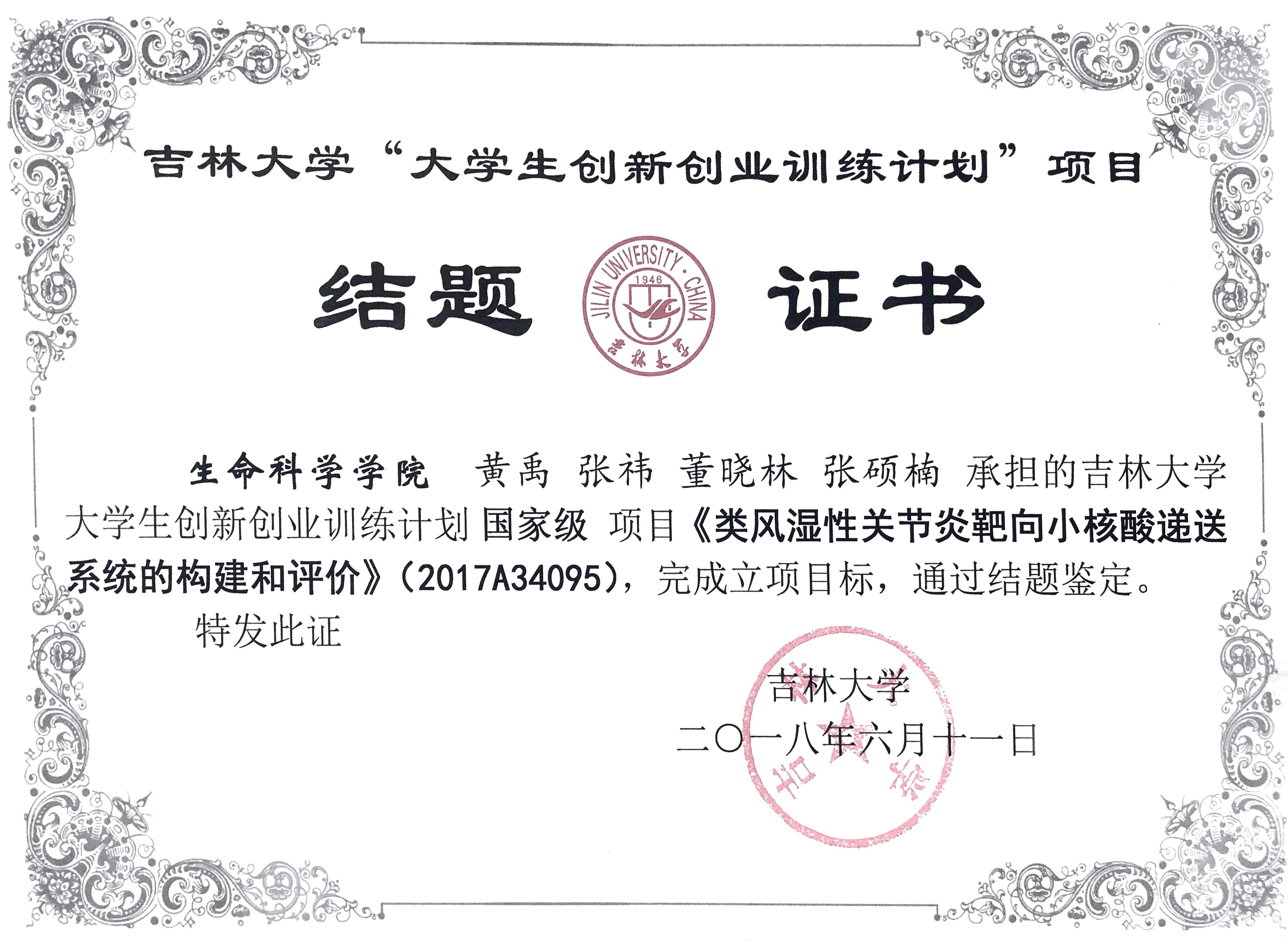 大二下学期,张祎积极申报了老员工创新创业训练计划,并很荣幸地加入了李全顺教授的类风湿性关节炎课题组,和同组成员一起共同接触一个全新的领域。