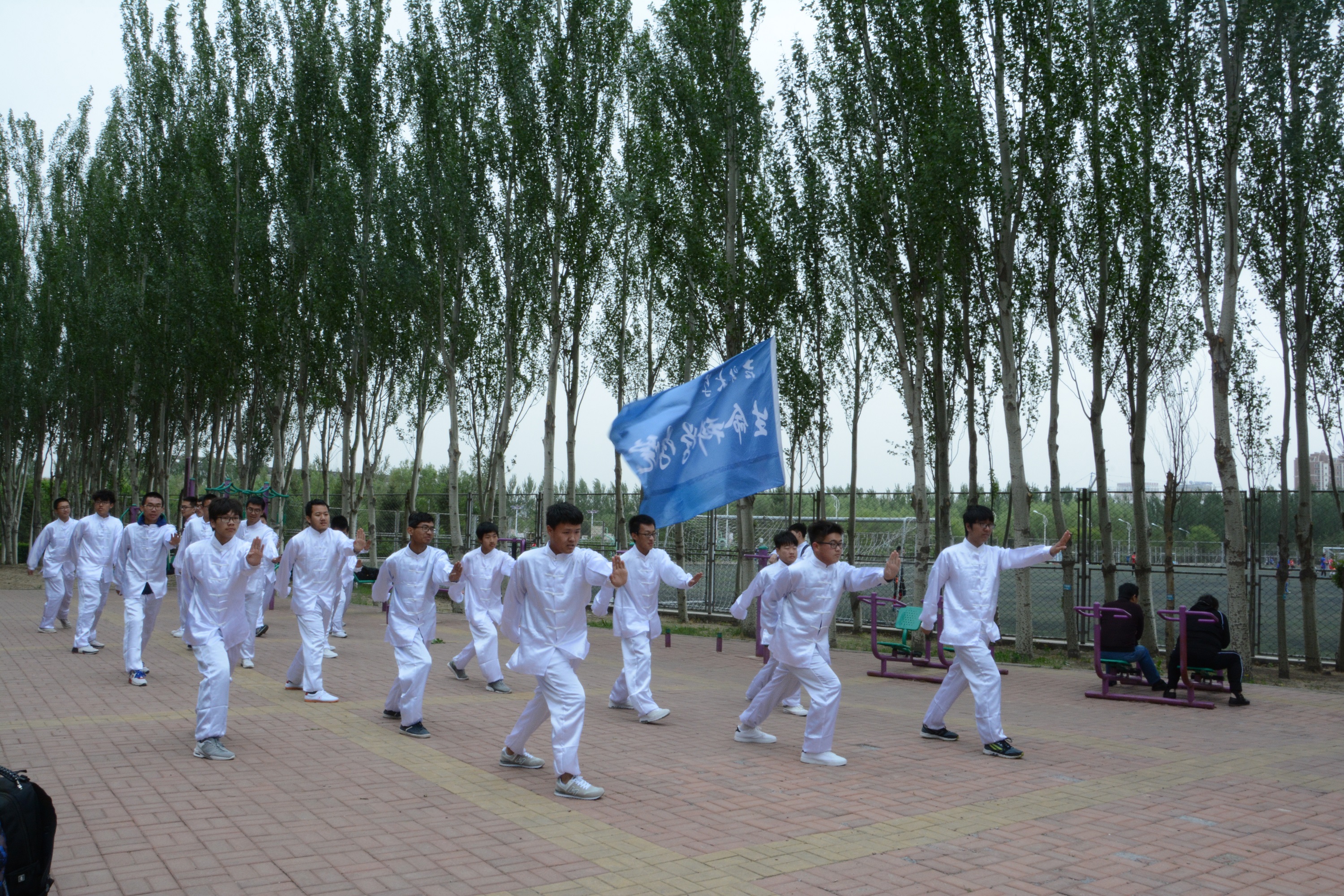 备战过程中,小伙子们每晚9:30在篮球场训练一个小时。连续20天,几乎天天满勤,从对长拳的陌生到动作整齐、有板有眼,他们付出了持之以恒的不懈努力。比赛开始时,小伙子们仍然抓紧时间跟着比赛场地的音乐在场地外一遍遍的完善动作。汇演时,小伙子们听从前台指挥,进场、退场、候场井然有序,尽展生科风采。同学们每晚一起练习,培养出了默契,原来陌生的面孔现在也是无比亲切。小伙子们意气勃发,首次在全校展现出伟德BV1946官网的风采,成为赛场上一条独特的风景线。