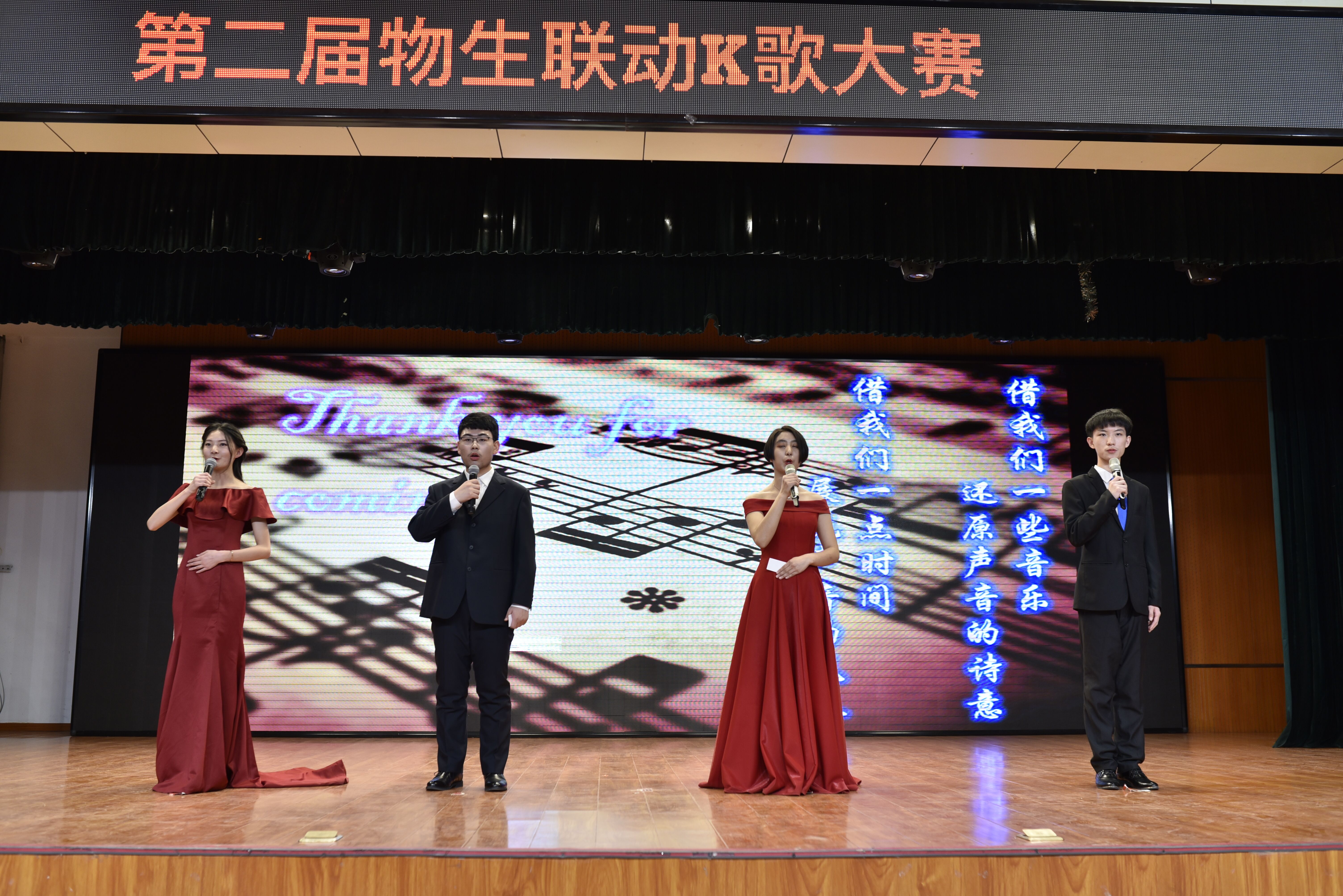 物生两院经过广泛宣传与多次彩排,在初春的夜色中终于为大家呈现了一台精彩的音乐盛宴。乐起舞动,激情四射的开场舞一下就调动起了全场的气氛,随后来自公司和物理公司的优秀选手带来的歌曲更让观众们的热情逐节攀升。歌手们风格多样,各有所长。在几首曲目的间隙还加入了飞花令、听歌识曲等趣味盎然的游戏环节。晚会现场气氛十分热烈,观众被充分调动起来,积极参与到活动的互动环节。公司于佳宁同学还应邀上台参与了魔术表演,将晚会推向高潮。经过3个小时的比赛,三名歌手脱颖而出,分获本次K歌大赛冠亚季军,其中,公司侯宁同学获得了第三名的优异成绩。