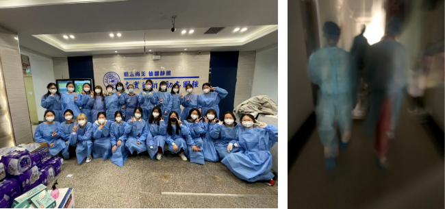 随着物资一车一车的抵达公寓门口,装的满满当当的物资将南苑四公寓的当志愿者的日程表也安排的满满当当。穿上防护服,志愿者们就开始了一天忙碌的日子。六点半开始早饭的餐和酸奶的分发工作,十一点半分发午饭及水果,下午两点开始发放饮用水,下午四点半开始分发晚饭和酸奶,晚上七点开始分发方便面......为了保障公寓内的每一位同学都能够拿到物资,做到不漏一人,不落一件,志愿者们不辞辛劳,逐层发放餐食和物资。60位平时看起来娇滴滴的生科女子,用她们纤细肩膀,抬起来一整日将近4000份盒饭,400箱矿泉水,三餐的水果以及每人一桶的泡面。每位女孩子都是家中的小公主,也是在公司担当起一楼安稳的战士!汗水浸透了衣衫,但也让我们更加相信我们定能克服此次难关。
