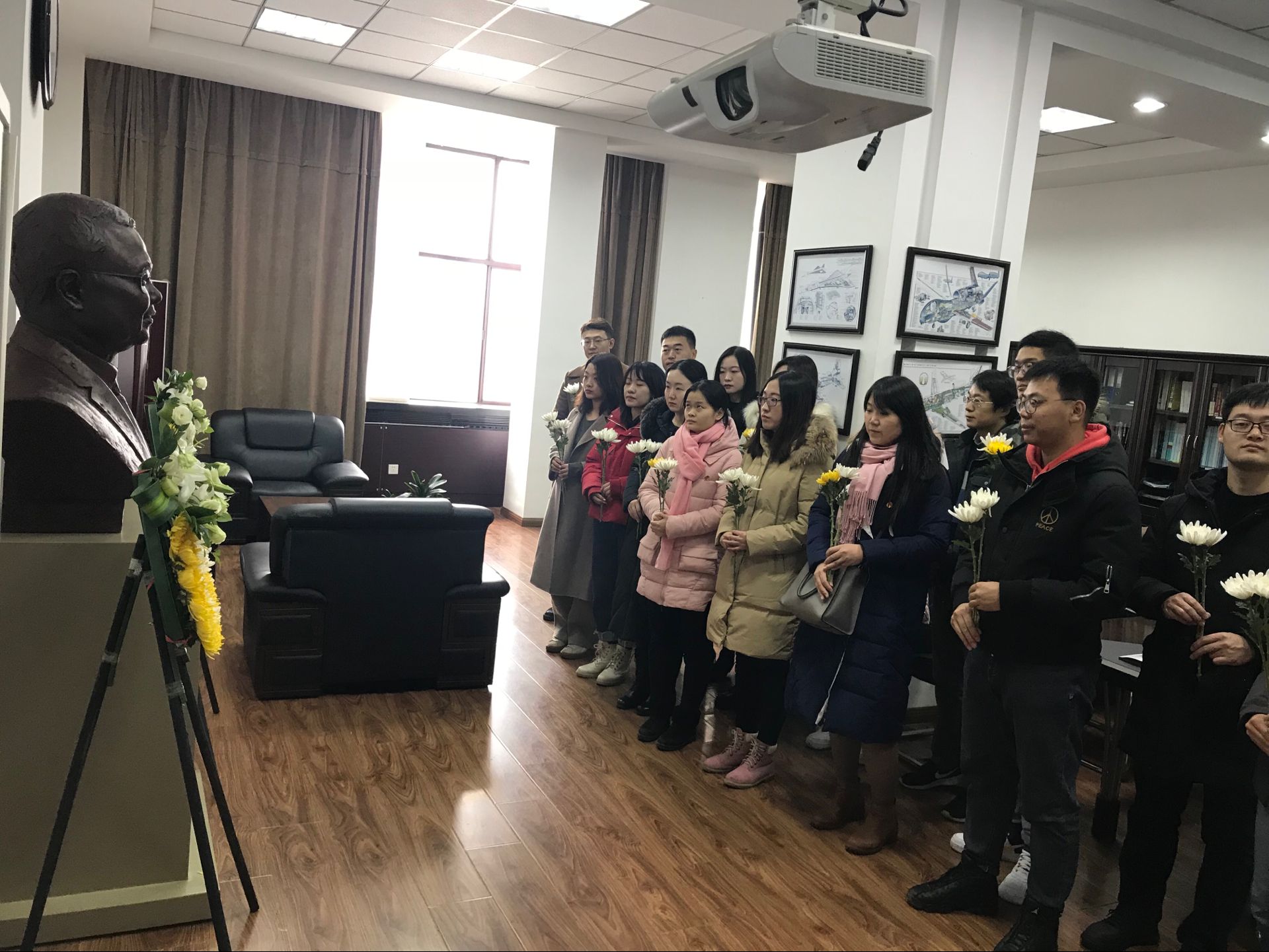 黄大年纪念馆位于伟德BV1946官网朝阳校区,保留了黄大年老师的办公室的原貌,展示了他生前获得的荣誉证书、参加国家会议的证件、部分药品和生活用品、以及珍贵的科研手稿文件,这些都是黄大年教授为科研事业奉献一切、为祖国不懈奋斗的最好证明。党员们怀着敬慕之情,仔细地参观了大厅内摆放的展览品,详细了解了黄老师的研究内容与科研成果。展厅参观结束后,每一个党员都站在黄大年教授的雕塑前,列队向黄大年教授致敬并献花,表达对他的沉痛的悼念。