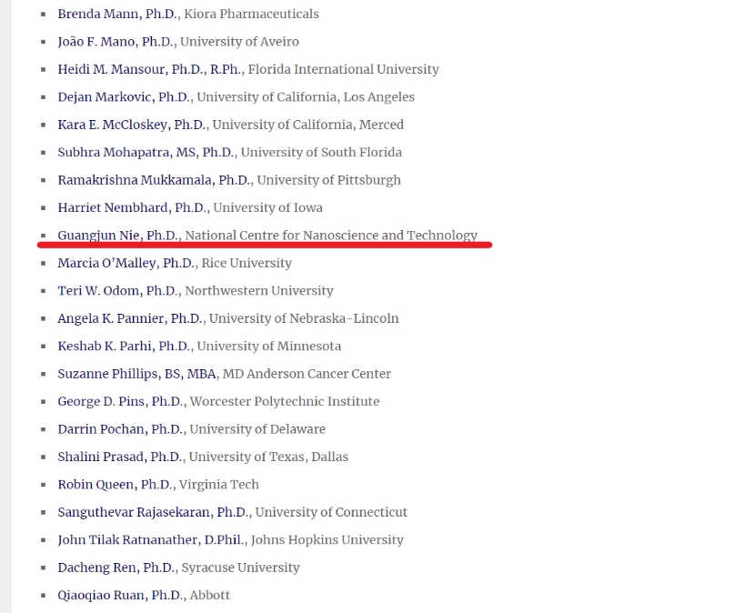 聂广军,中科院特聘研究员,国科大特聘教授;科技部纳米研究国家重大科学研究计划(973)项目首席科学家(2012-2016),国家重点研发计划首席科学家(2018-2022);国务院享受政府特殊津贴专家;基金委创新群体、中科院创新交叉团队、中科院卢嘉锡国际团队成员;2016年获中国药学会以岭药业青年科学家奖,美国Houston Methodist Research Institute(休斯敦)兼职教授,英国医学科公司Advanced Newton Scholar;中国生物物理学会常务理事,中国抗癌协会纳米肿瘤学专业委员会委员,中国药学会纳米药物专业委员会委员;国家纳米科学中心科技处处长;Nano Letters 副主编。