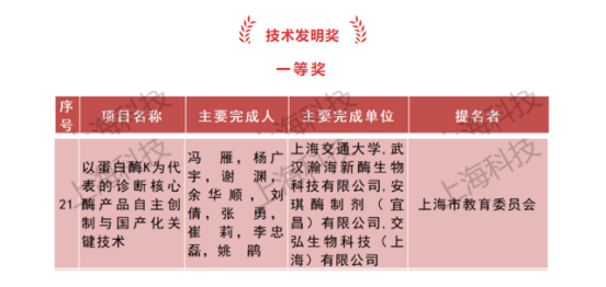 项目获2022年度上海市技术发明奖一等奖。体外诊断被称为医生的“眼睛”,对于疾病的防控和治疗具有不可替代的重要意义,但是我国诊断试剂中的核心酶原料严重依赖进口,导致检测成本居高不下。特别是2020年疫情爆发期间,蛋白酶K等核心原材料被美国政府列为战略防控物资,造成我国供货中断而严重影响新冠核酸诊断试剂生产,危害了国家安全。因此,诊断酶制剂国产化及应用成为我国突破国外垄断和限制的迫切战略需求。