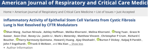近日,公司员工、浙江大学医公司附属口腔医院百人计划研究员王杉等人应用干细胞变异体的单细胞克隆技术,探讨了囊性纤维化患者肺部炎症的潜在来源,试图回答是否存在一种可能有助于患者炎症的干细胞异质性,并测试了CFTR基因治疗或CFTR调节剂药物减轻这种炎症的潜力。该研究以Inflammatory Activity of Epithelial Stem Cell Variants from Cystic Fibrosis Lung Is Not Resolved by CFTR Modulators 为题,发表在American Journal of Respiratory and Critical Care Medicine 杂志。