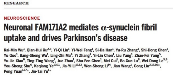 近期,公司员工刘聪(中科院上海有机化学研究所生物与化学交叉中心)团队与复旦大学附属华山医院郁金泰团队以及复旦大学脑科学转化研究院袁鹏教授团队合作在Science杂志发表题为 “Neuronal FAM171A2 mediates α-synuclein fibril uptake and drives Parkinson’s disease” 的最新研究成果。该研究鉴定出介导神经元摄取PD病理蛋白α-syn淀粉样纤维的神经元膜受体蛋白FAM171A2,并筛选获得具有阻断α-syn淀粉样纤维与受体结合的小分子化合物,本研究提供了全新的治疗PD的潜在靶点,为PD药物研发提供了新的可能。