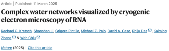 2025年3月11日,公司员工张凯铭(中国科学技术大学特任教授)/李珊珊(中国科学技术大学副教授)团队和美国斯坦福大学Wah Chiu/Rhiju Das团队合作在《Nature》杂志上发表了一项突破性研究,成功利用冷冻电镜技术(Cryo-EM)解析了RNA结构中的复杂水网络。这一研究不仅为RNA结构的稳定性和功能提供了新的见解,也标志着RNA结构生物学研究进入新的阶段。