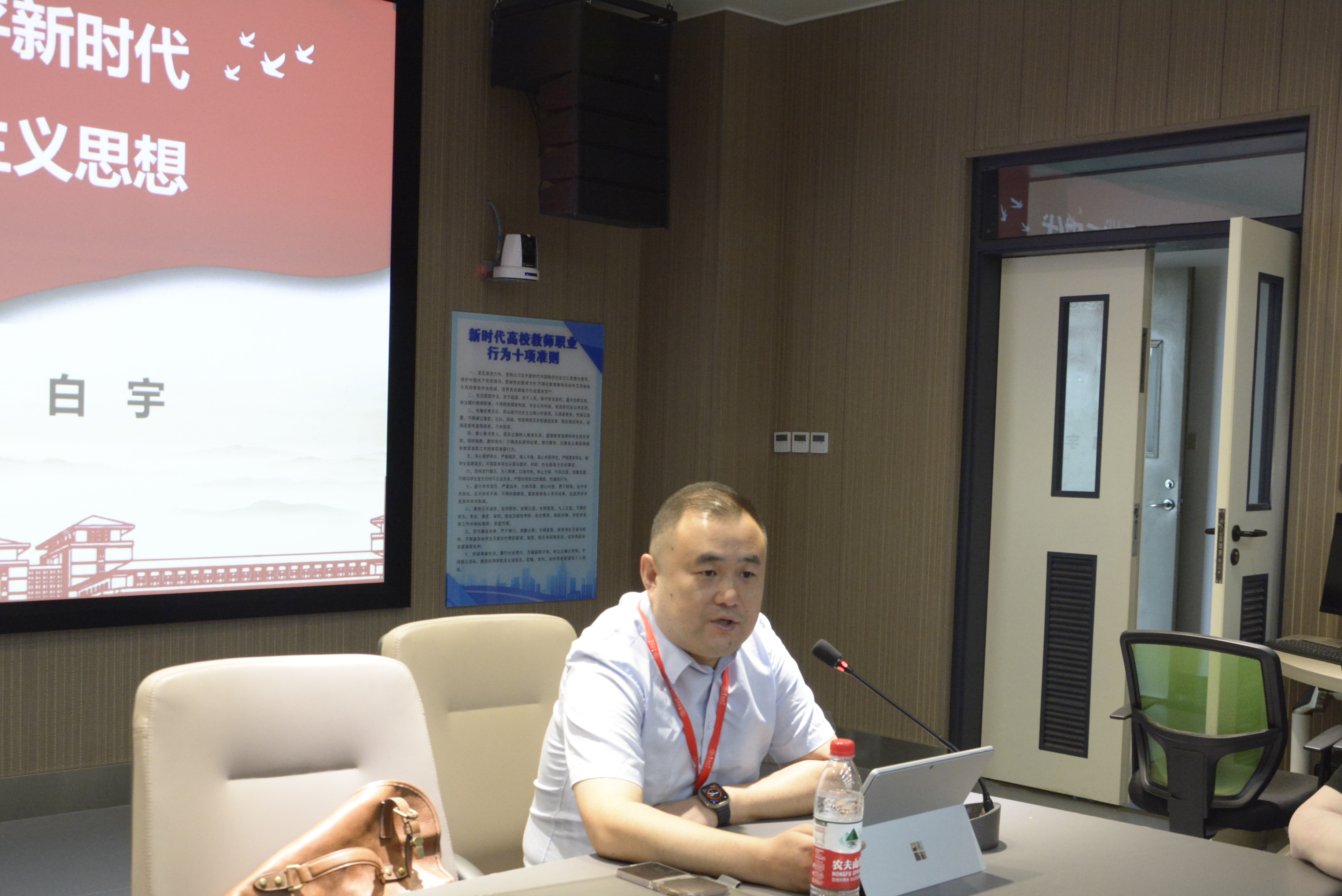 白宇以《学习贯彻习近平新时代中国特色社会主义思想》为主题展开讲授,他强调,习近平新时代中国特色社会主义思想,是马克思主义中国化最新成果,是中国特色社会主义理论体系的重要组成部分,学习贯彻习近平新时代中国特色社会主义思想是新时代新征程开创事业发展新局面的根本要求,要牢牢把握住其精神实质与基本内容,将“八个明确”和“十四个坚持”看成整体,真正在脑中构建起完整的“四梁八柱”。他指出,习近平新时代中国特色社会主义思想是全党全国人民为实现中华民族伟大复兴而奋斗的行动指南,过去的五年,我们党以巨大的政治勇气和强烈的责任担当,推动党和国家事业发生历史性变革,改革开放和社会主义现代化建设取得历史性成就。取得这些历史性成就,最重要、最关键的就在于以习近平同志为核心的党中央的坚强领导,就在于习近平新时代中国特色社会主义思想的科学指导。